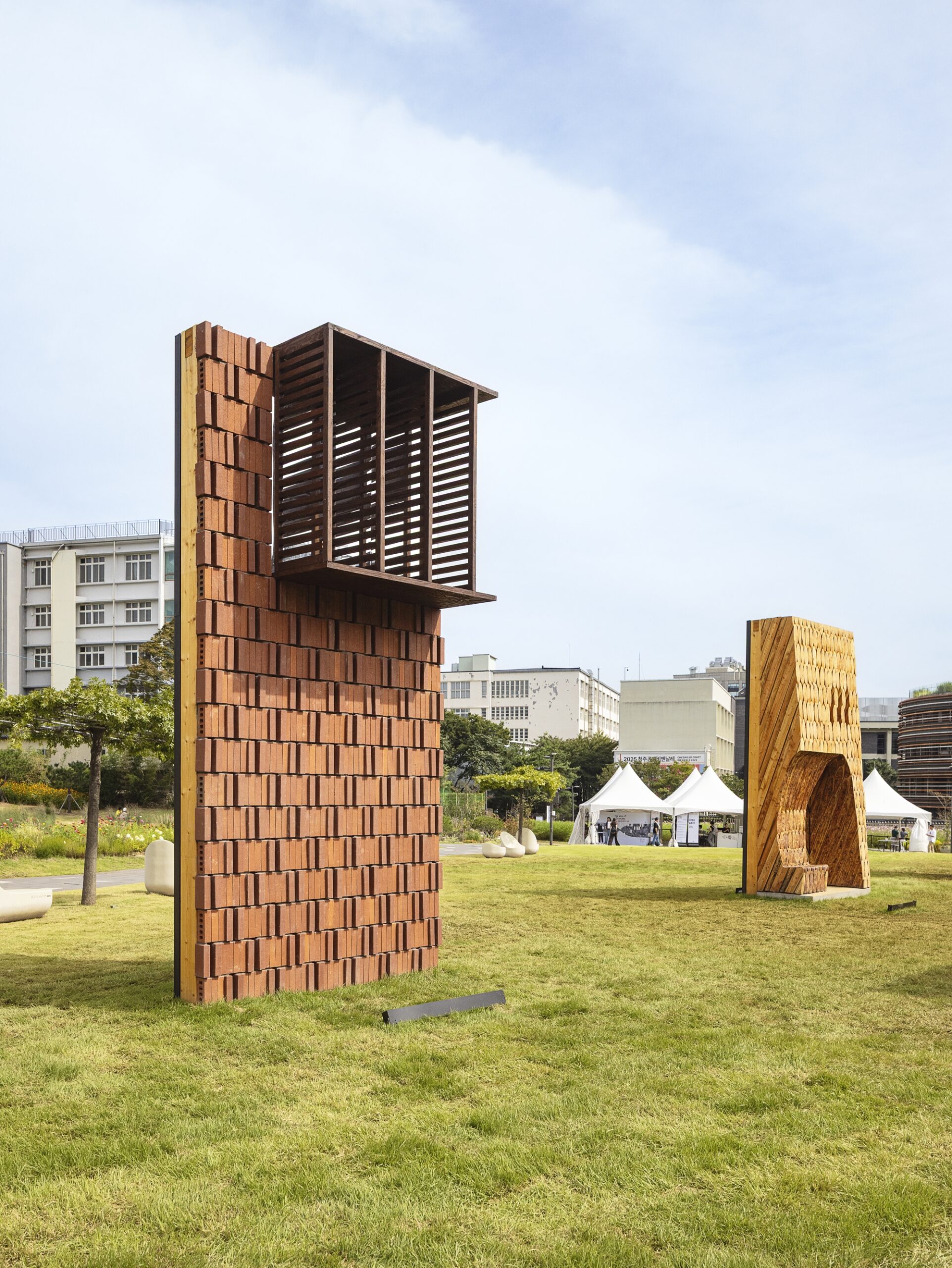 ‘Let it Breathe’ is an installation designed for the Walls of Public Life at the Seoul Biennale, 2025. The walls are a series of 2.4m x 4.8m fragments of larger facades. Being made with real materials, at 1:1 scale, they emulate the walls that one would encounter in their day-to-day life, and seek to create these walls in a radically human way.